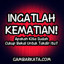 Kematian itu akan datang pada bila-bila masa sahaja.Tak kira masa dan tempat. Sesuatu yang bernyawa pasti akan merasai kematian. Bagaimana agaknya kematian yang bakal menjemput kita? Adakah ketika itu kita sedang dalam keadaan yang alpa? Terkejarkan kehidupan duniawi sehingga melupakan kehidupan ukhrowi? Allahu. Atau kematian kita akan berakhir dengan husnul khotimah dan mengakhiri kalam kita dengan dapat menyebut kalimah yang sangat suci, LA ILAHA ILLALLAH. Ameen!!!! Allahu Robbi.
